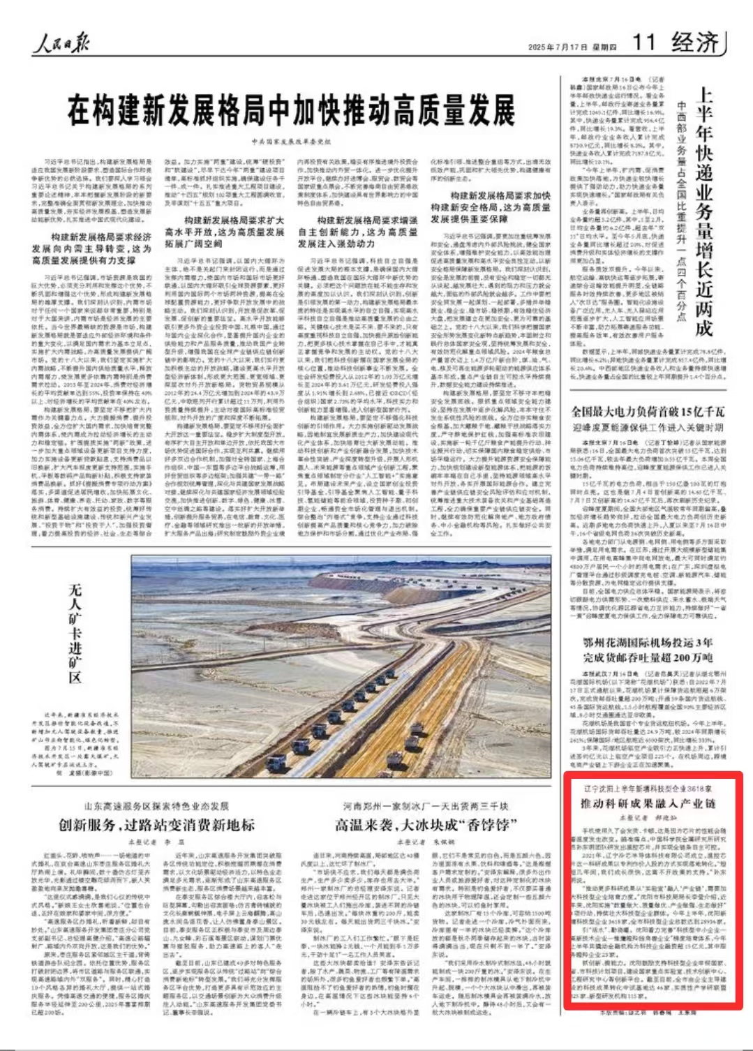 人民日报点赞沈阳:推动科研成果融入产业链