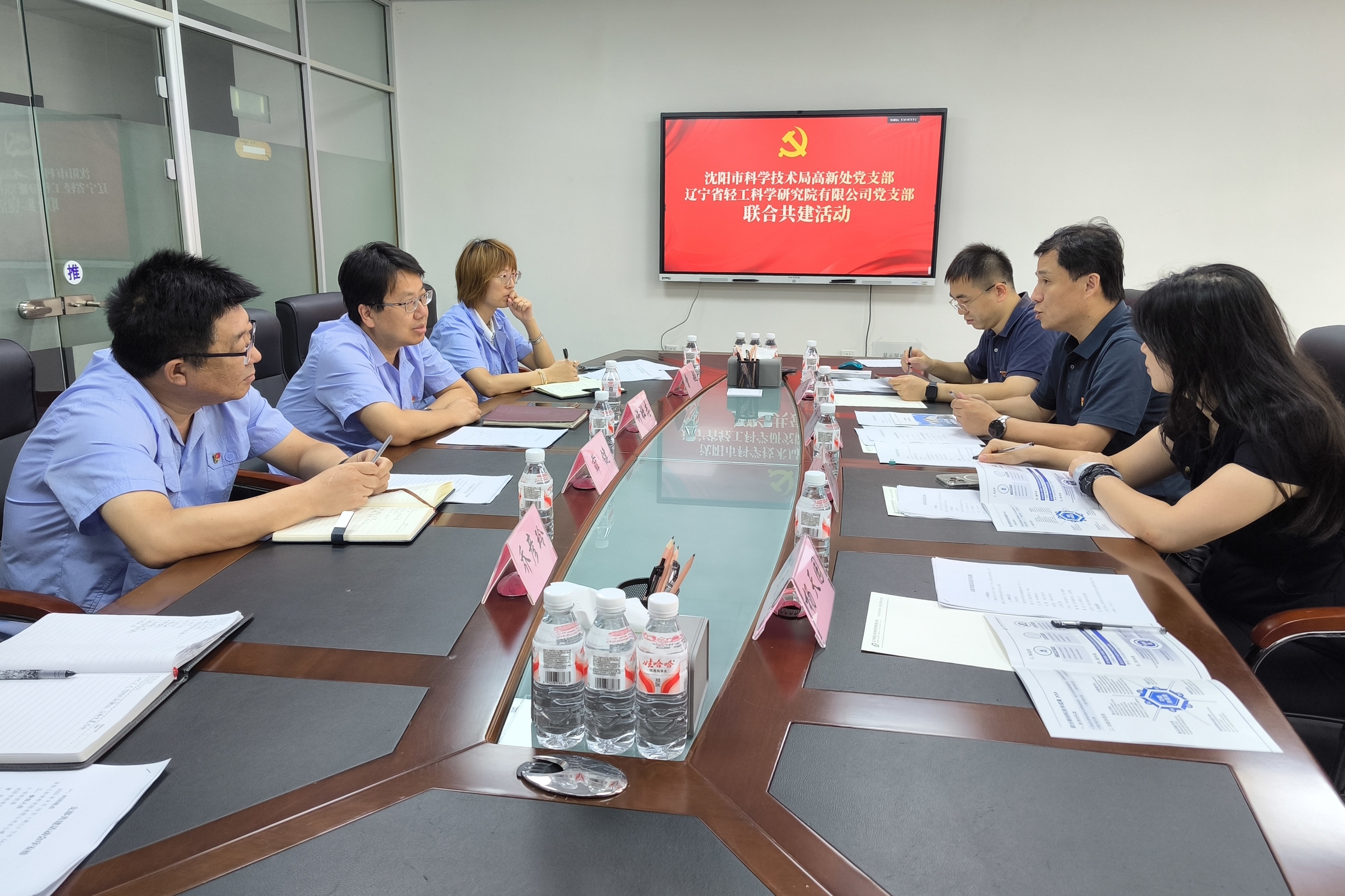 为发挥党建引领作用,深化党建与业务融合,打造“沈科先锋汇”党建活动品牌,8月19日下午,亚洲体育博彩平台高新技术发展处党支部与辽宁省轻工科学研究院有限公司党支部联合开展党务共建活动。