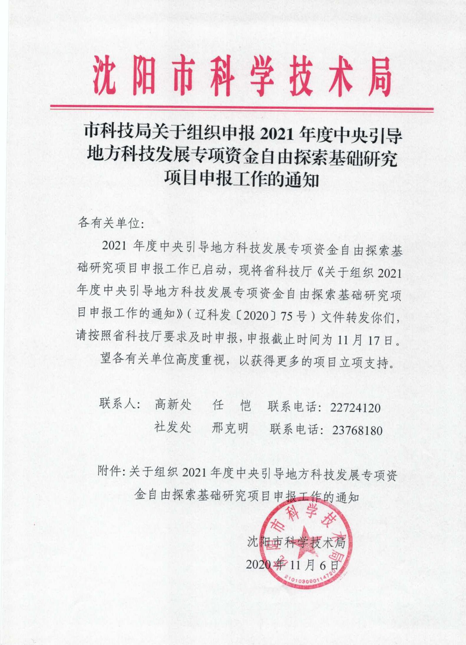 关于组织开展2021年度中央引导地方科技发展专项资金自由探索类基础研究项目申报工作的通知.pdf