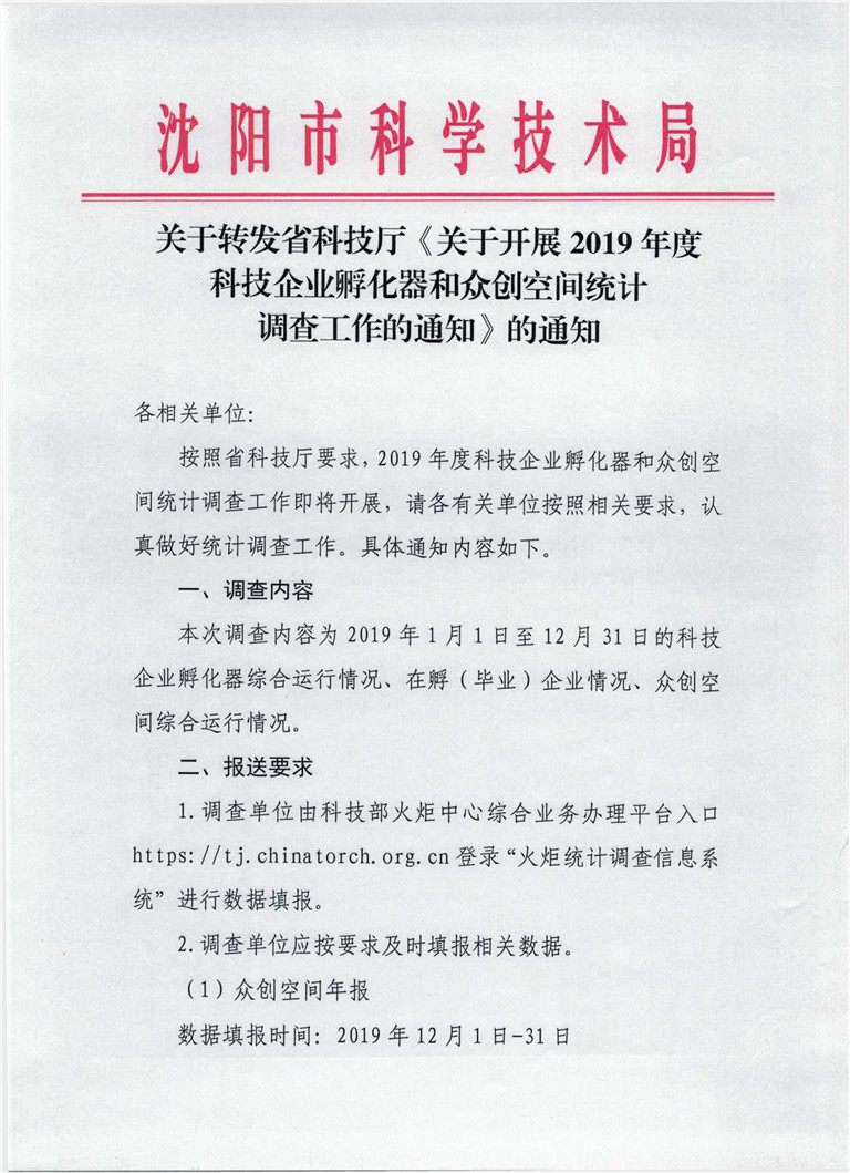 关于转发省科技厅《关于开展2019年度科技企业孵化器和众创空间统计调查工作的通知》的通知