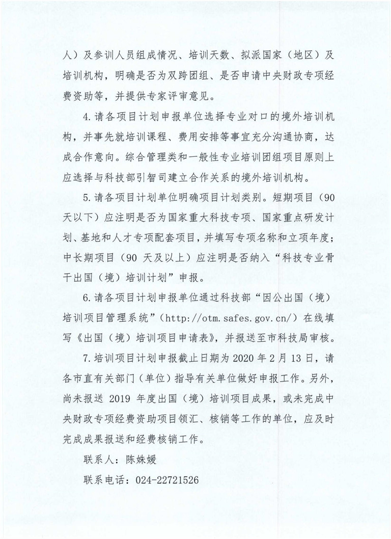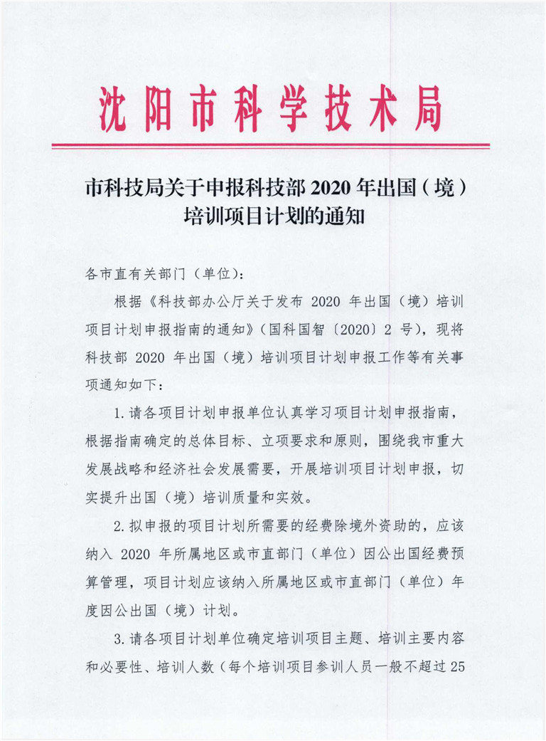亚洲体育博彩平台关于申报科技部2020年出国(境)培训项目计划的通知