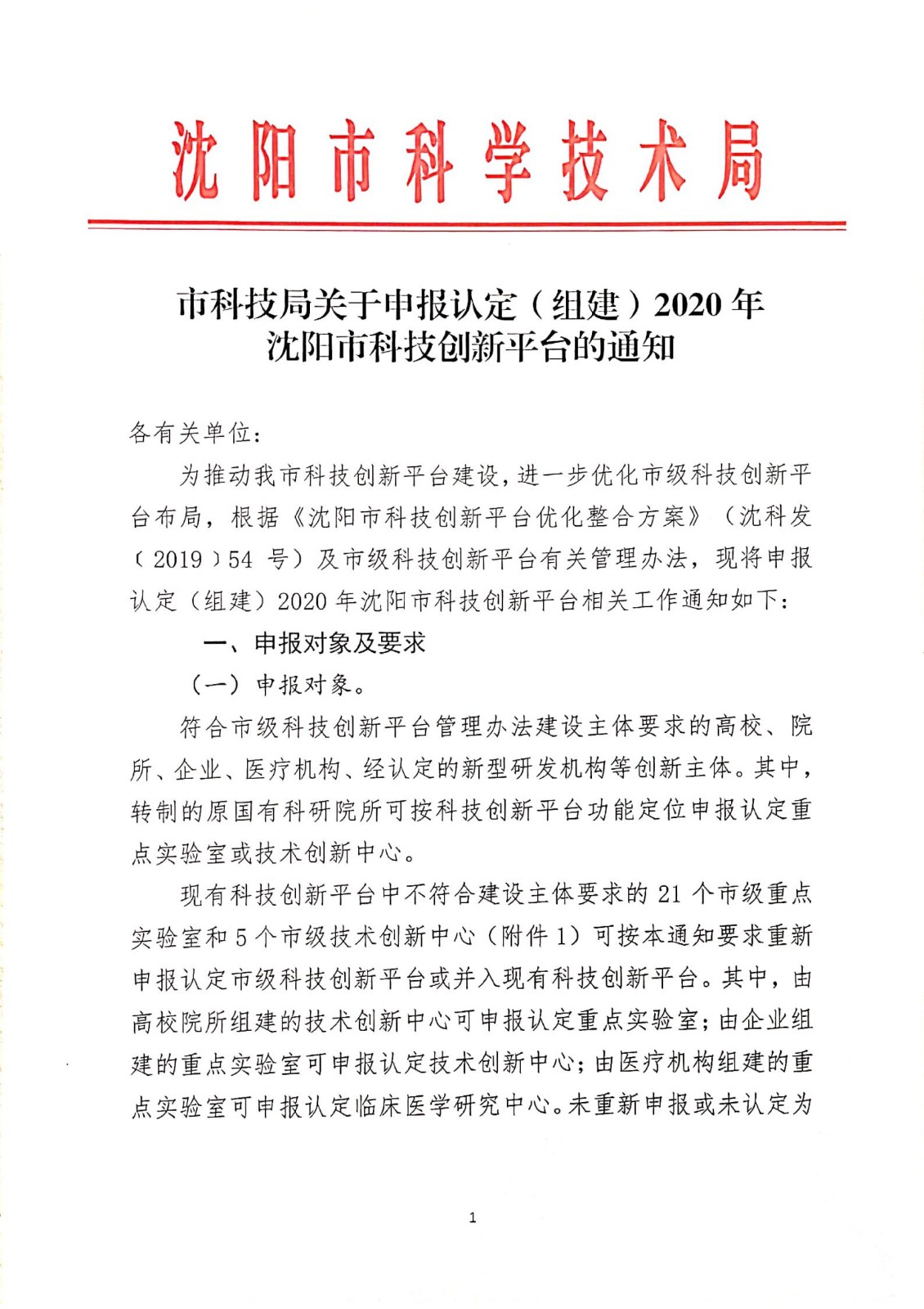 亚洲体育博彩平台关于申报认定(组建)2020年亚洲体育博彩平台科技创新平台的通知