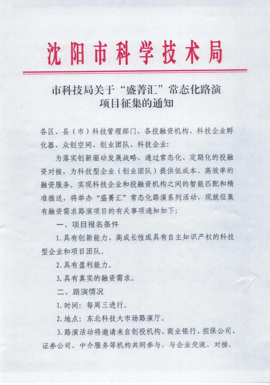 亚洲体育博彩平台关于“盛菁汇”常态化路演项目征集的通知