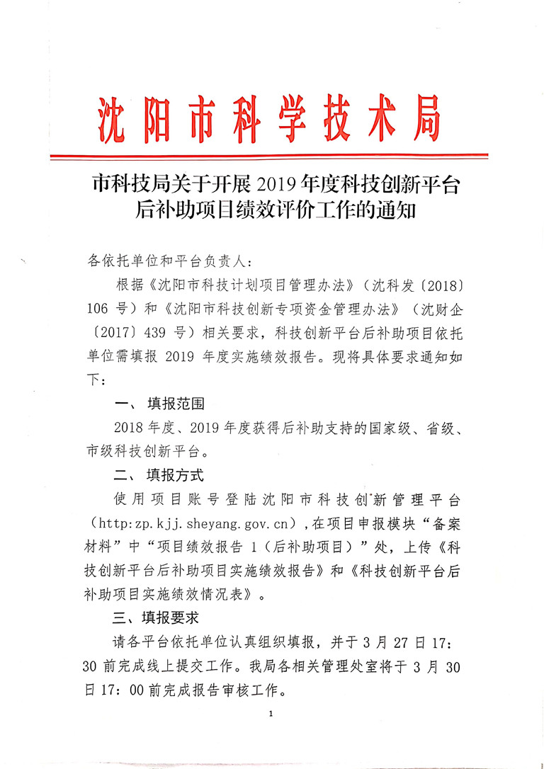 亚洲体育博彩平台关于开展2019年度科技创新平台后补助项目绩效评价工作的通知