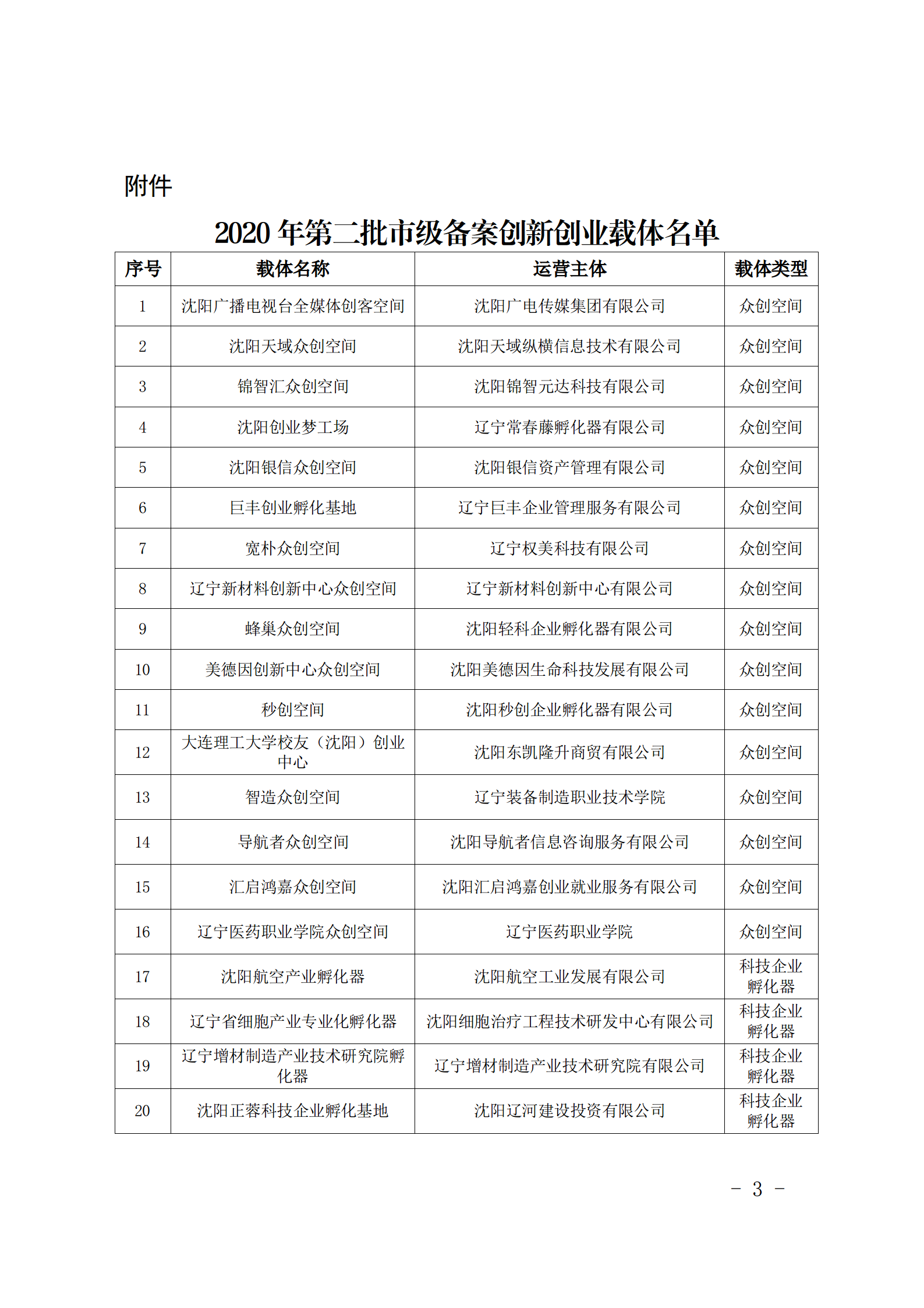 为推动我市创新创业载体高质量发展,根据《亚洲体育博彩平台创新创业载体备案管理办法》(沈科发〔2019〕48号)具体要求,现将“沈阳广播电视台全媒体创客空间”等20家载体备案成为市级创新创业载体。