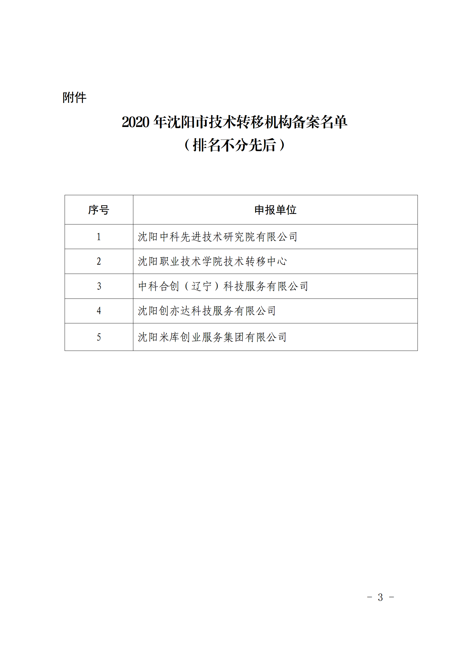根据《亚洲体育博彩平台技术转移示范机构专项资金管理实施细则》(沈科发〔2019〕65号)规定,现将沈阳中科先进技术研究院等5家机构备案成为亚洲体育博彩平台技术转移机构。