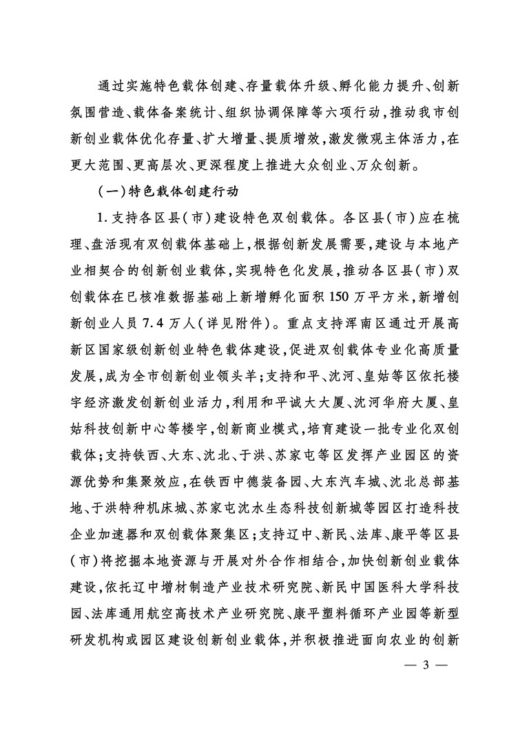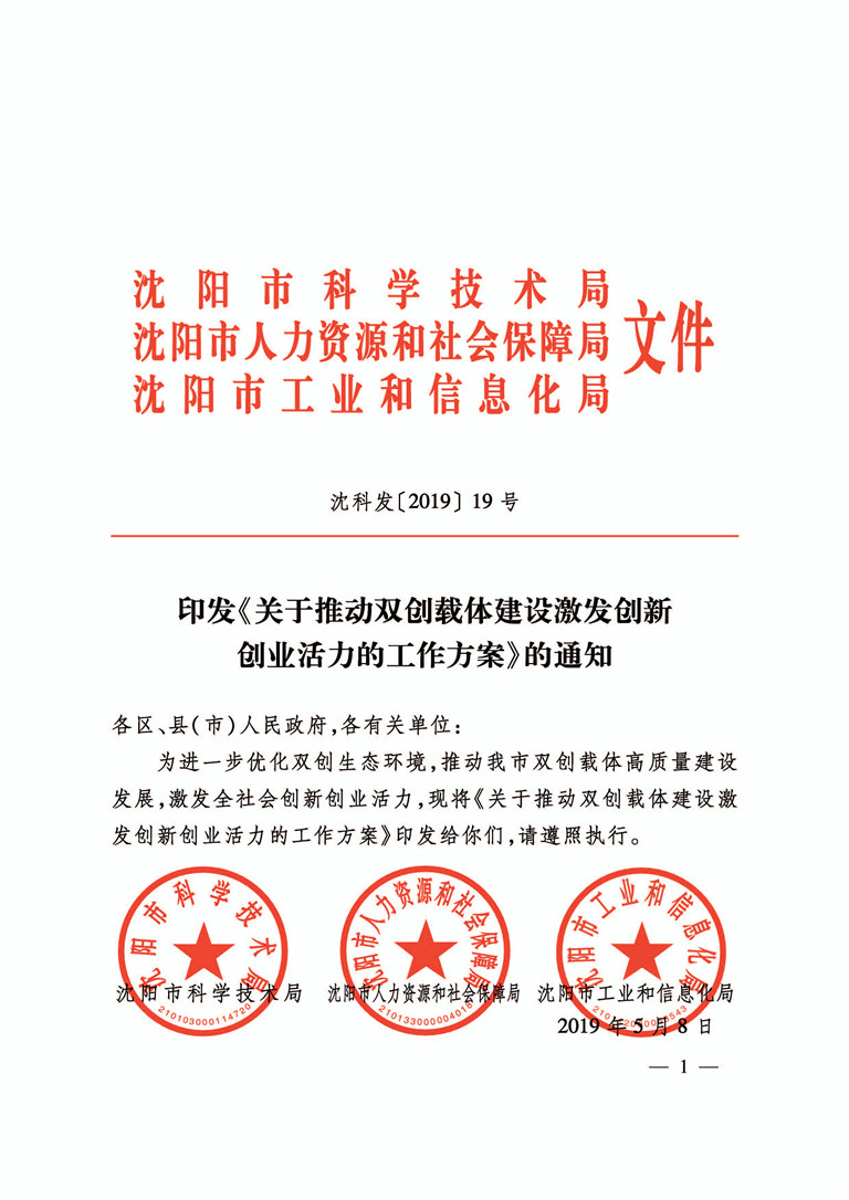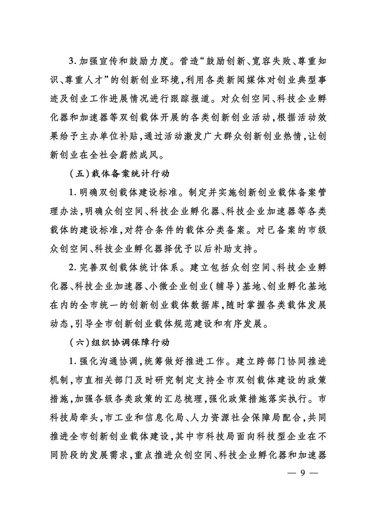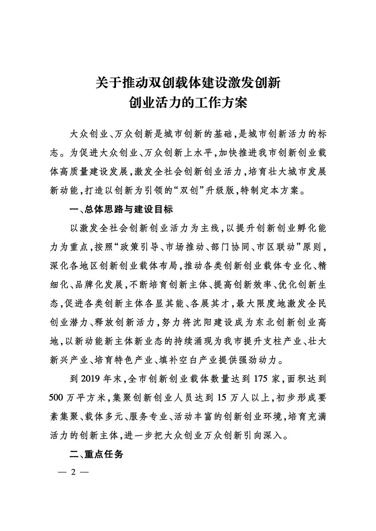 印发《关于推动双创载体建设激发创新创业活力的工作方案》的通知