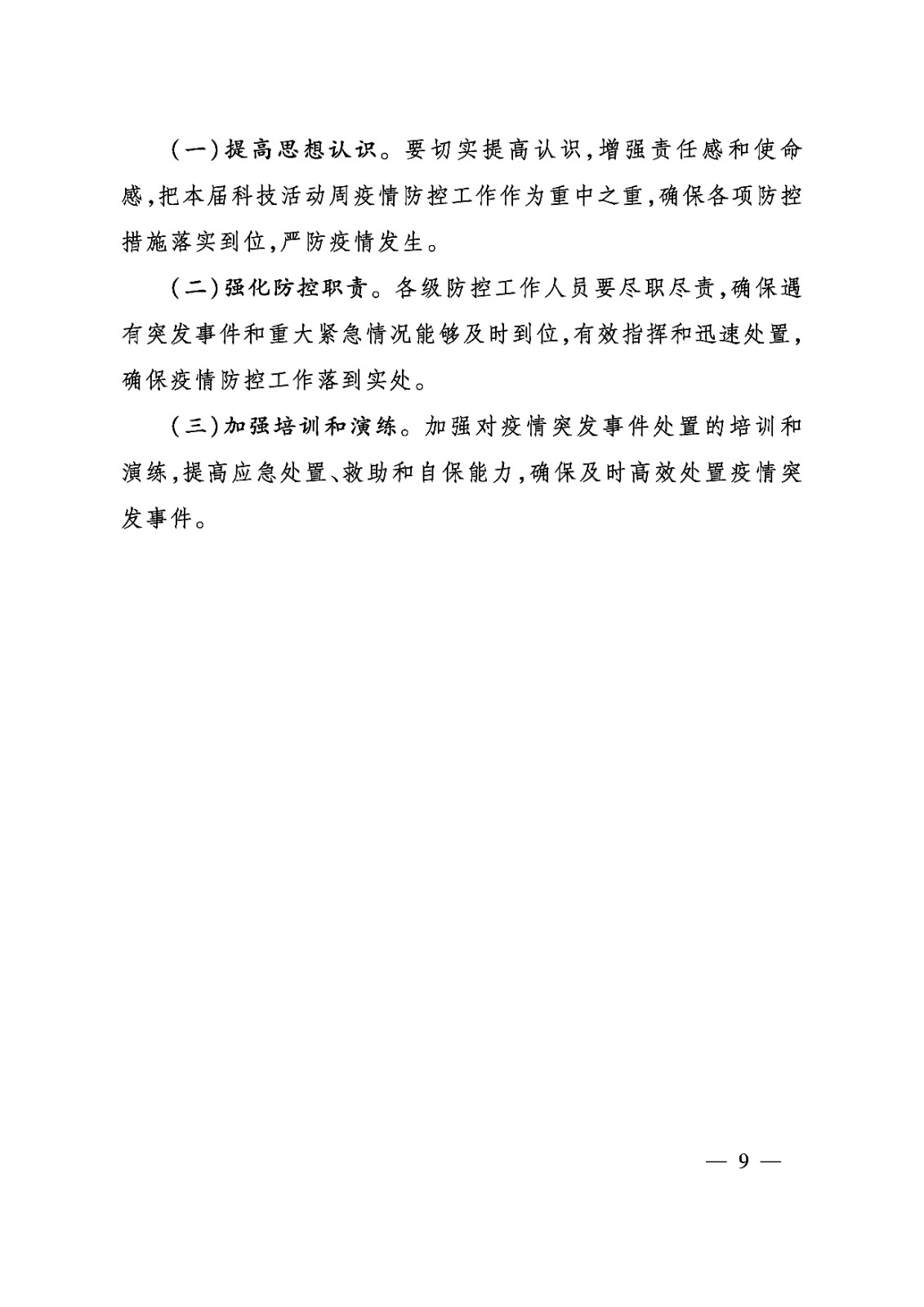 (四)本届科技活动周得到浑南区人民政府大力支持,请浑南区做好2020年科技活动周启动仪式场地提供和场地经费保障,以及场地内外防疫、医疗、信访、交通、市容、安保等保障工作。