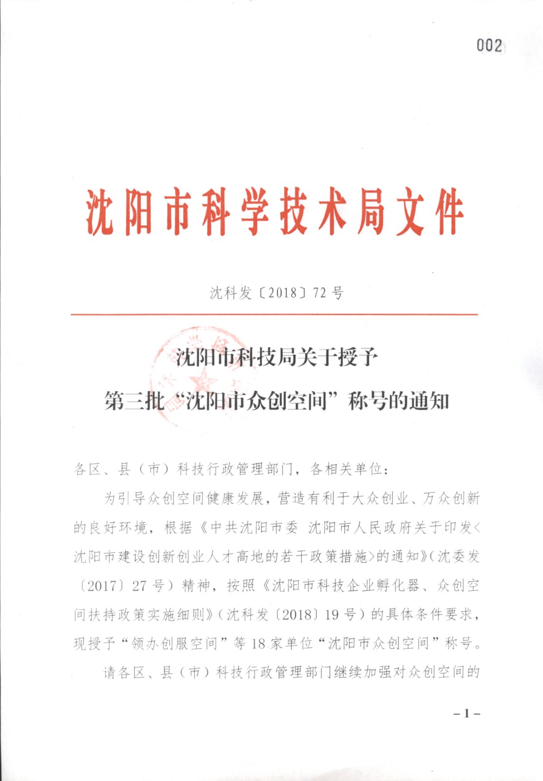 亚洲体育博彩平台关于授予第三批 "亚洲体育博彩平台众创空间"称号的通知