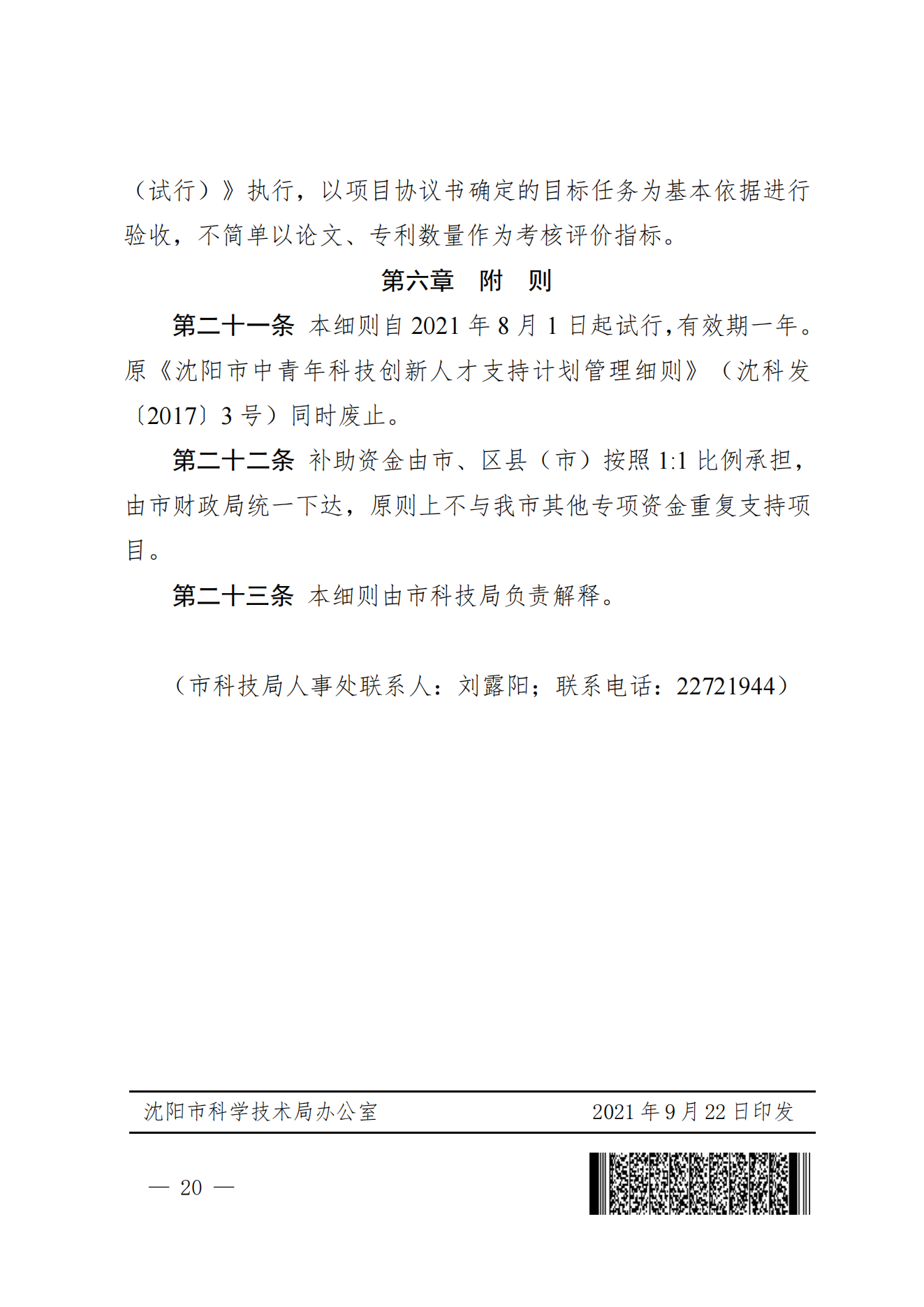 为落实《亚洲体育博彩平台建设创新创业人才高地的若干政策措施(新修订)》(沈人社发〔2021〕19号),现将《亚洲体育博彩平台科技创新成果转化补助资金人才专项实施细则》等5个配套细则印发给你们,请据此做好科技人才开发和相关项目申报工作。
