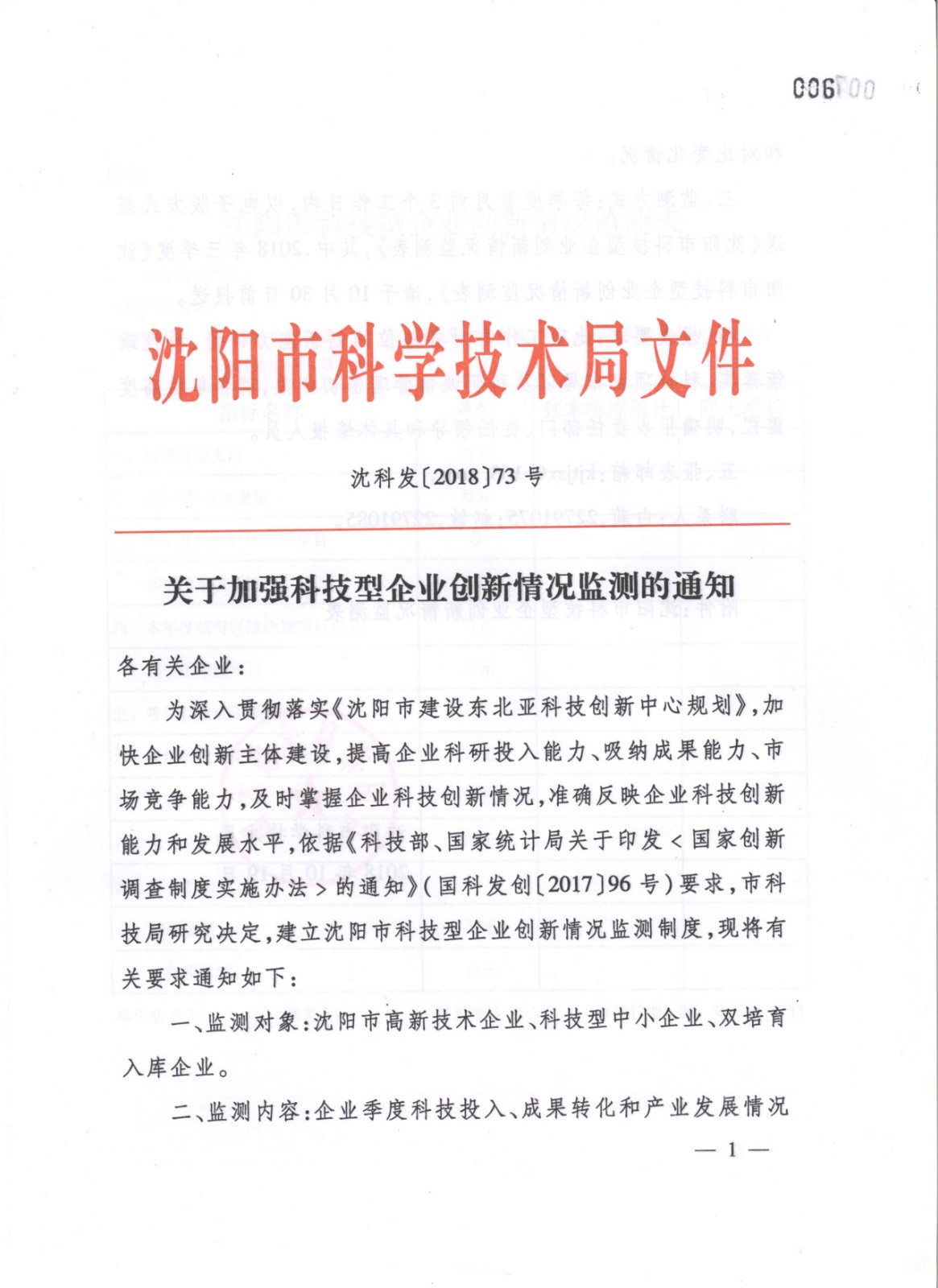 关于加强科技型企业创新情况监测的通知