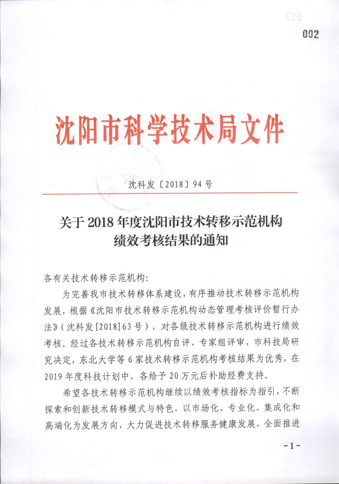关于2018年度亚洲体育博彩平台技术转移示范机构绩效考核结果的通知