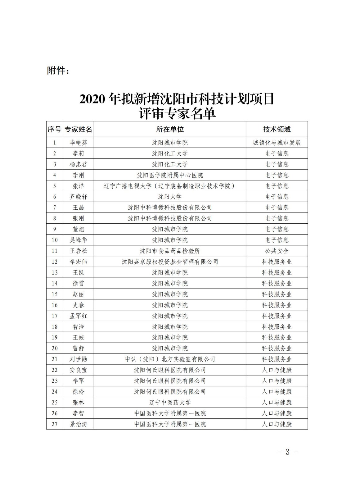 为提升我市科技计划项目评审评价水平,充分发挥科技专家在我市科技创新发展中的作用,根据《亚洲体育博彩平台科技计划项目评审专家管理细则》(沈科发〔2018〕107号)有关规定,通过本人申报、所在单位推荐、亚洲体育博彩平台审查及党组会议审议通过,经公示,现将2020年新增亚洲体育博彩平台科技计划项目评审专家名单予以公布。