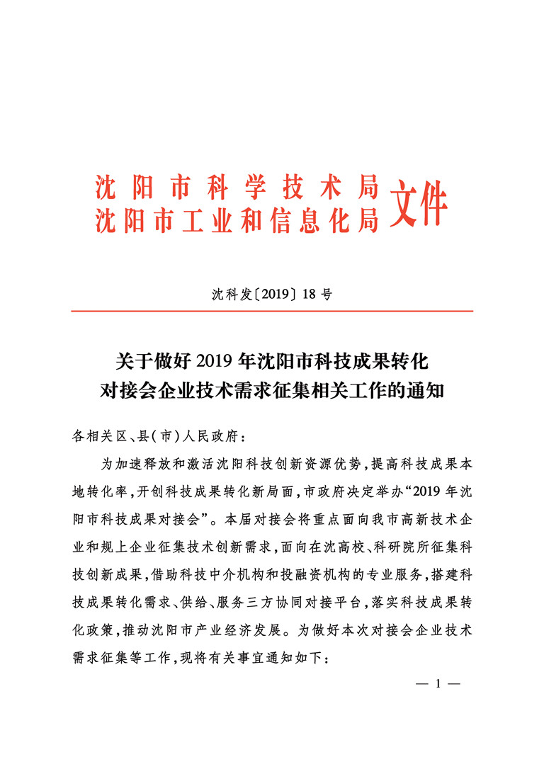 关于做好2019年亚洲体育博彩平台科技成果转化对接会企业技术需求征集相关工作的通知
