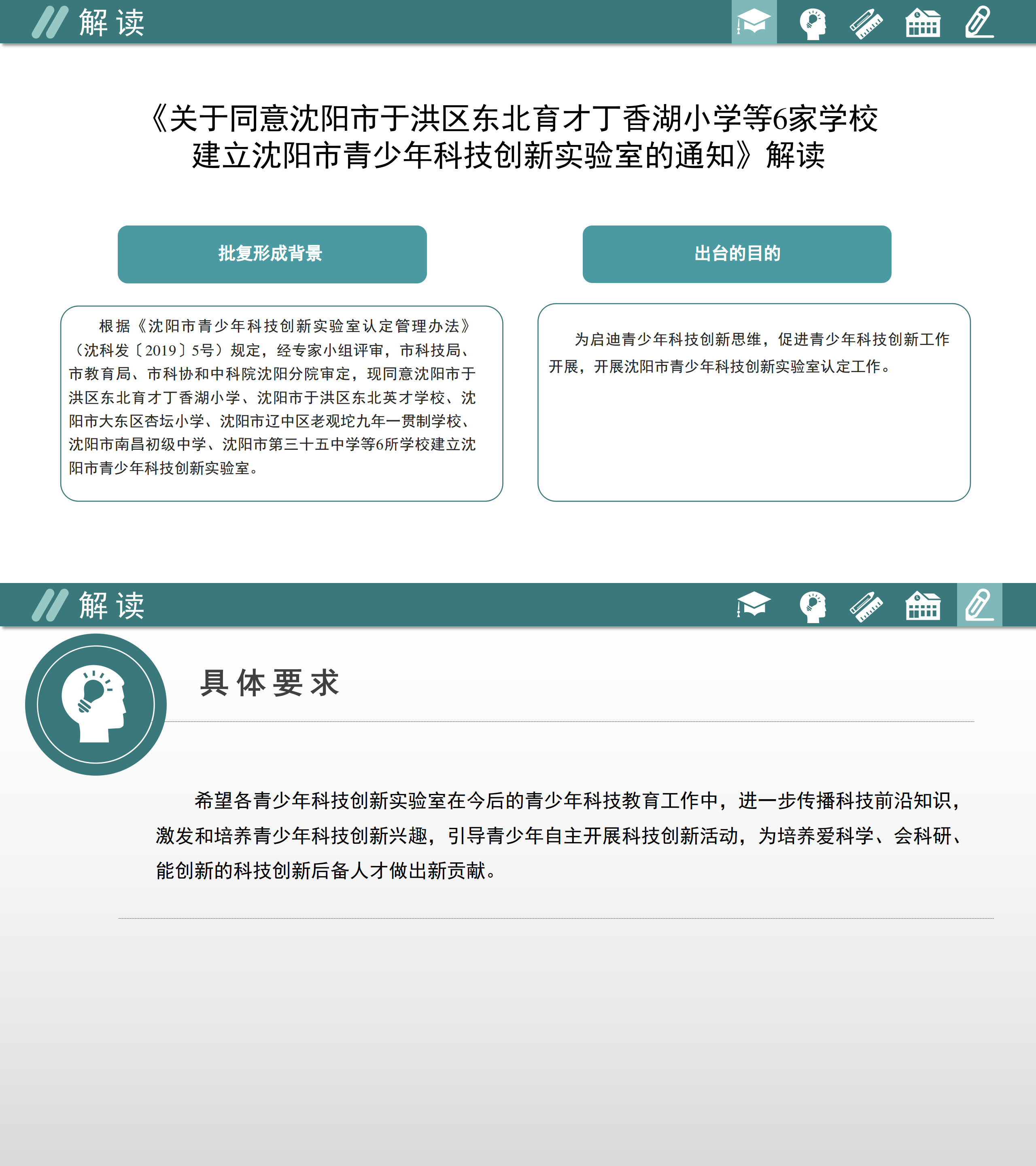 图解:《关于同意亚洲体育博彩平台于洪区东北育才丁香湖 小学等6家学校建立亚洲体育博彩平台青少年科技创新实验室的通知》解读