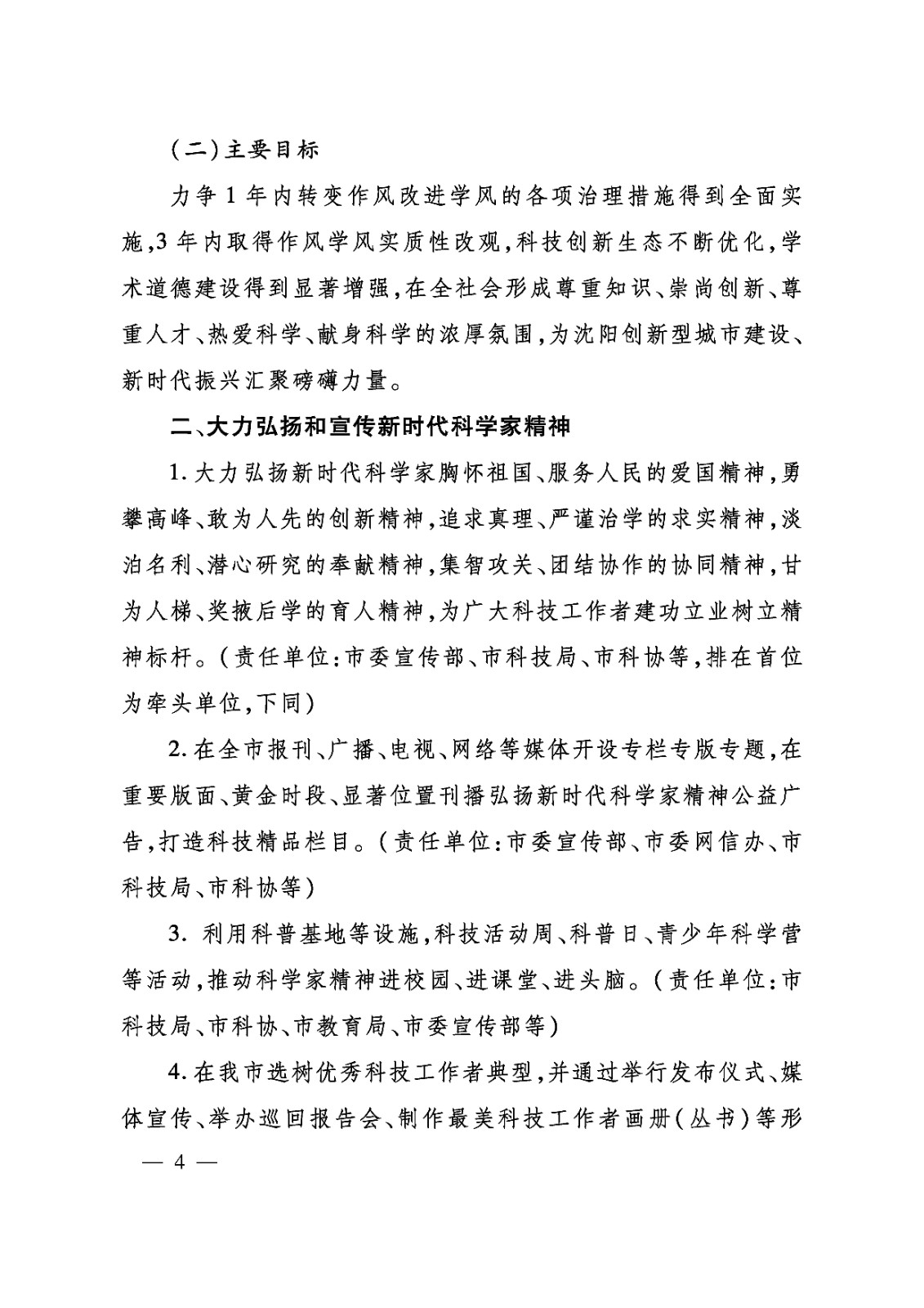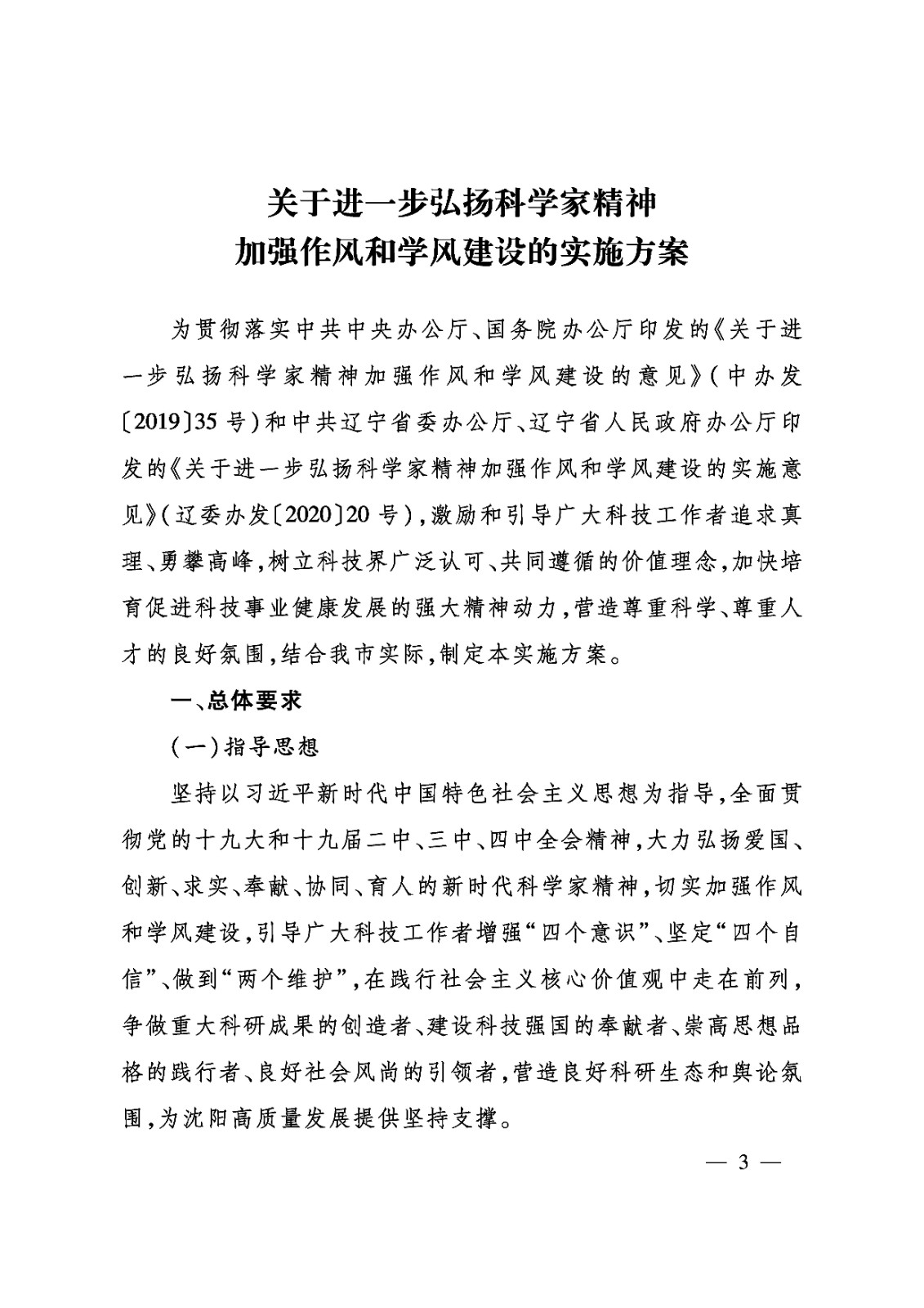 为贯彻落实中共中央办公厅、国务院办公厅《关于进一步弘扬科学家精神加强作风和学风建设的意见》(中办发〔2019〕35号)和中共辽宁省委办公厅、辽宁省人民政府办公厅《关于进一步弘扬科学家精神加强作风和学风建设的实施意见》(辽委办发〔2020〕20号)精神,激励和引导广大科技工作者追求真理、勇攀高峰,树立科技界广泛认可、共同遵循的价值理念,加快培育促进科技事业健康发展的强大精神动力,在全社会营造尊重科学、尊重人才的良好氛围,现将《关于进一步弘扬科学家精神加强作风和学风建设的实施方案》印发给你们,请认真组织实施。