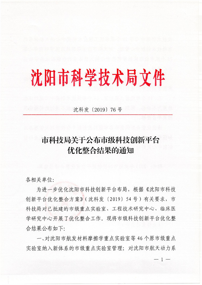 亚洲体育博彩平台关于公布市级科技创新平台优化整合结果的通知